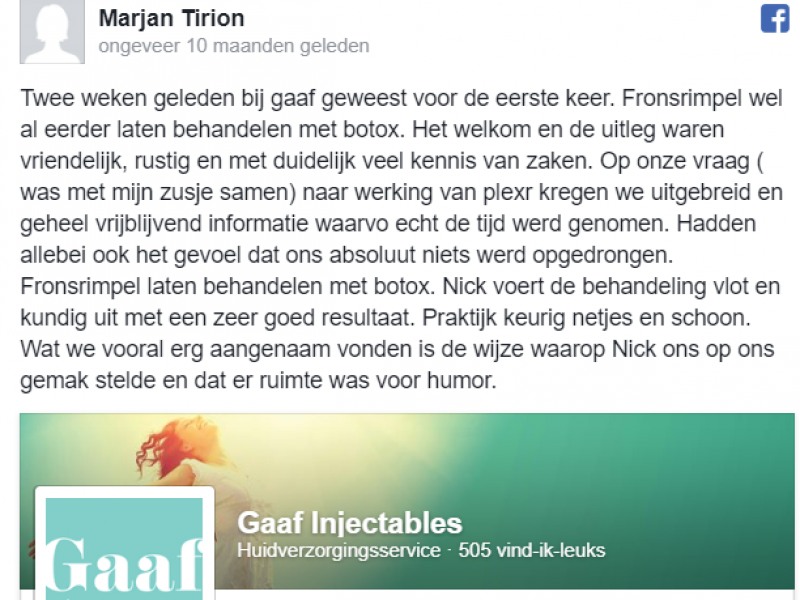 Ook het verstrakken van de kaaklijn wordt wel eens geopperd om met Plexr te behandelen. Onze ervaringen hiermee zijn niet heel positief, dus dat raden wij onze klanten niet aan.