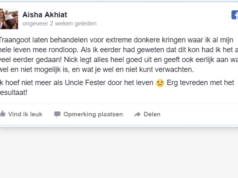 Na ongeveer 1 week is de huid hersteld. Dit is gemiddeld twee weken sneller dan bij een operatie.